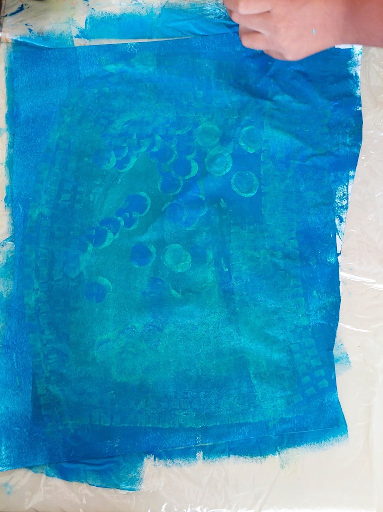 technique : gouache et acrylique sur feuille. Bleu vert et bleu foncé
