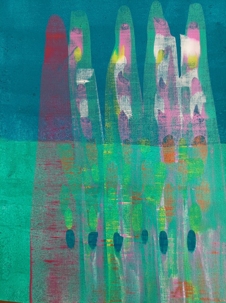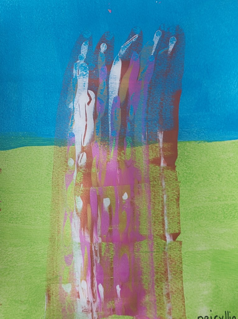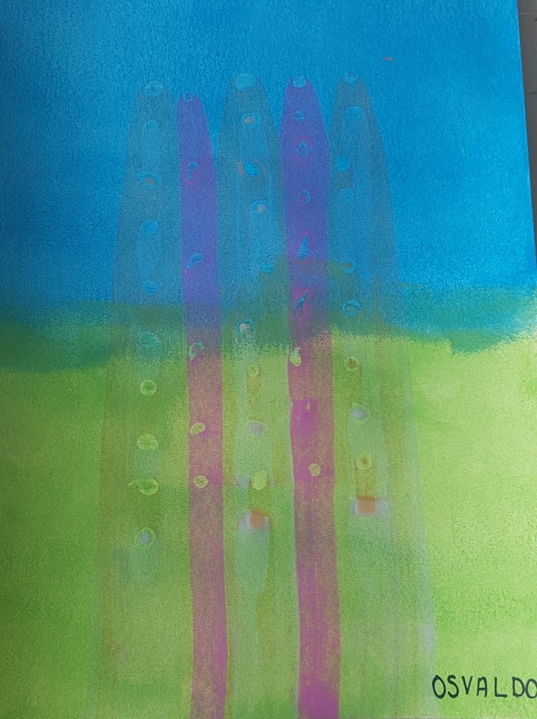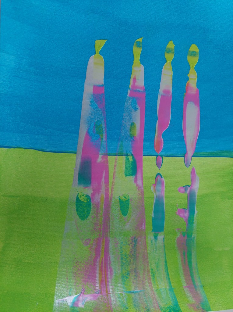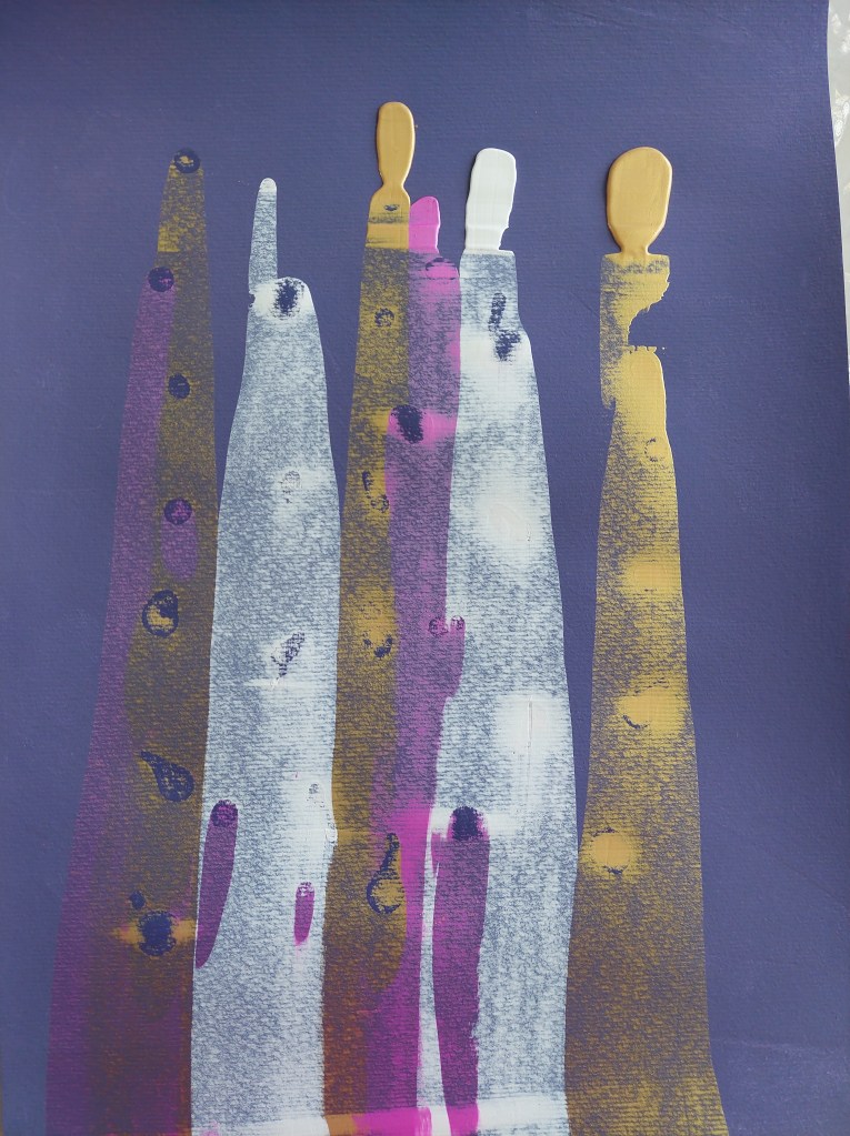 Dans le cadre de l’action académique à laquelle nous participons , mes Cm2 ont réalisé avec de la peinture gouache et de l’acrylique des œuvres abstraites sur feuille. On a commencé par des tâches on a fini par des traces…